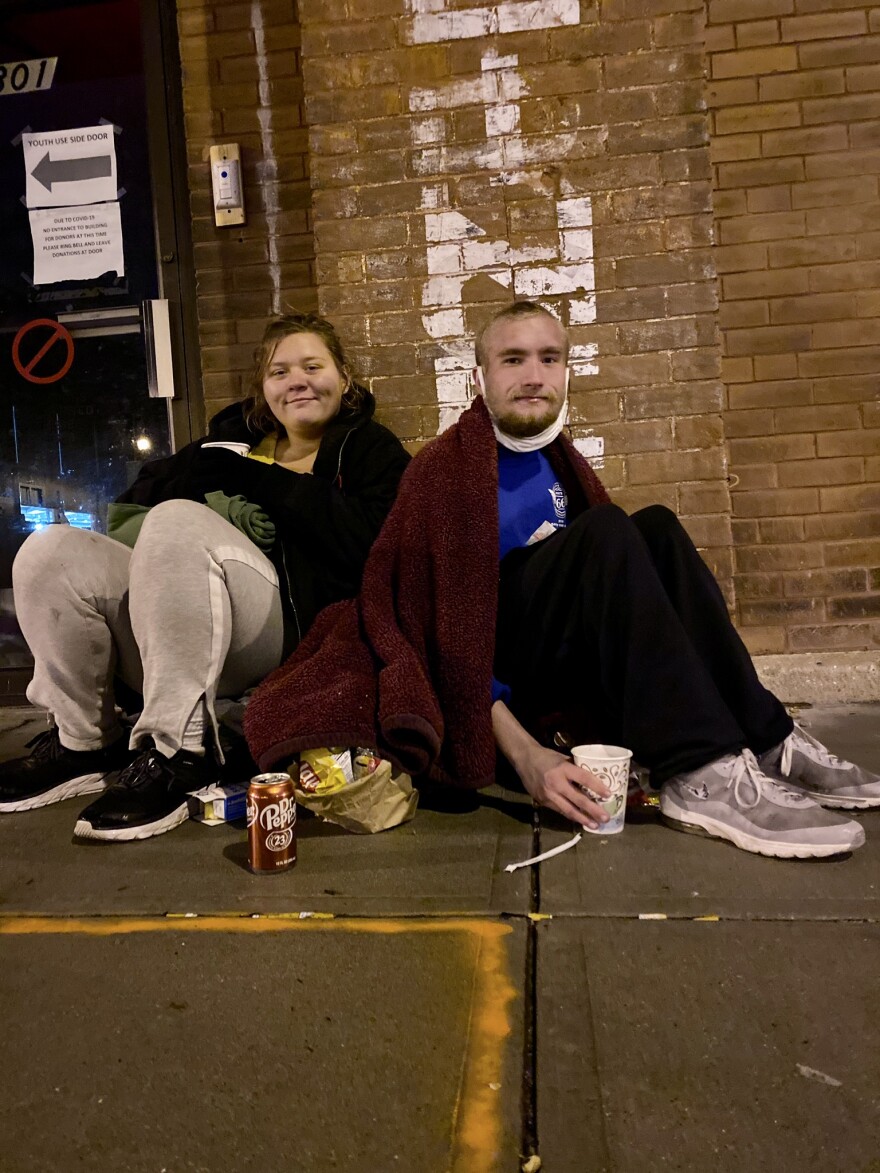 The first person is 21-year-old River Herron. On the night before Thanksgiving, he was huddled under a blanket with a friend outside a building downtown.