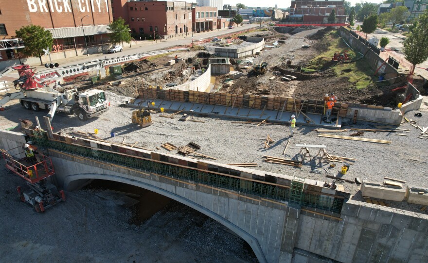 “You can kind of see the channel taking shape, but there is a lot of native planting, plaza spaces, seating areas, railing, veneer — things like that, that will really add the finishing touches to the project,” said Kirkland Preston, Professional Engineer for the project.