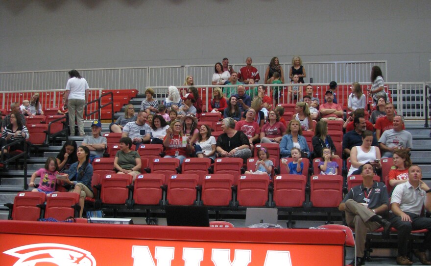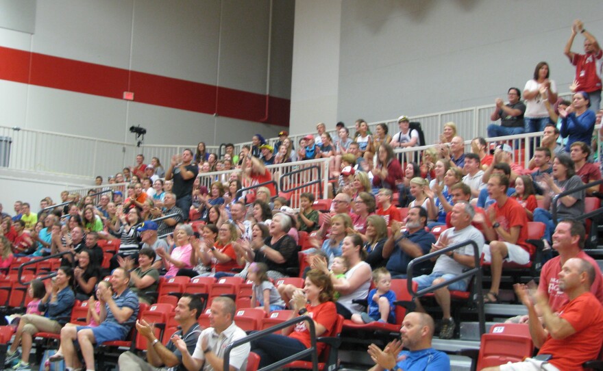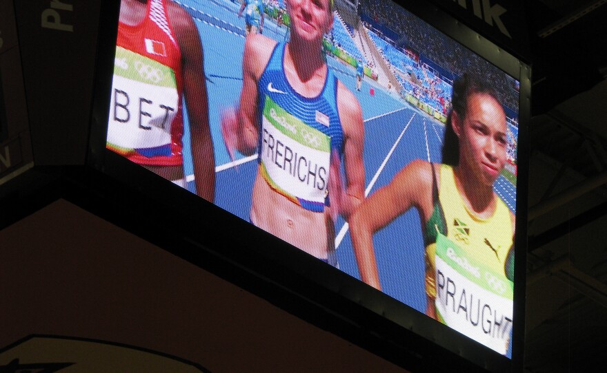A good-sized crowd gathered in the Nixa High School gym Monday to watch one of Nixa’s own, Courtney Frerichs race in the Olympics. Jennifer Steinmeier was among those in attendance. The Nixa resident said she and her family came to celebrate the Olympics and the last day of summer vacation. She’s proud of Frerichs for making it this far.